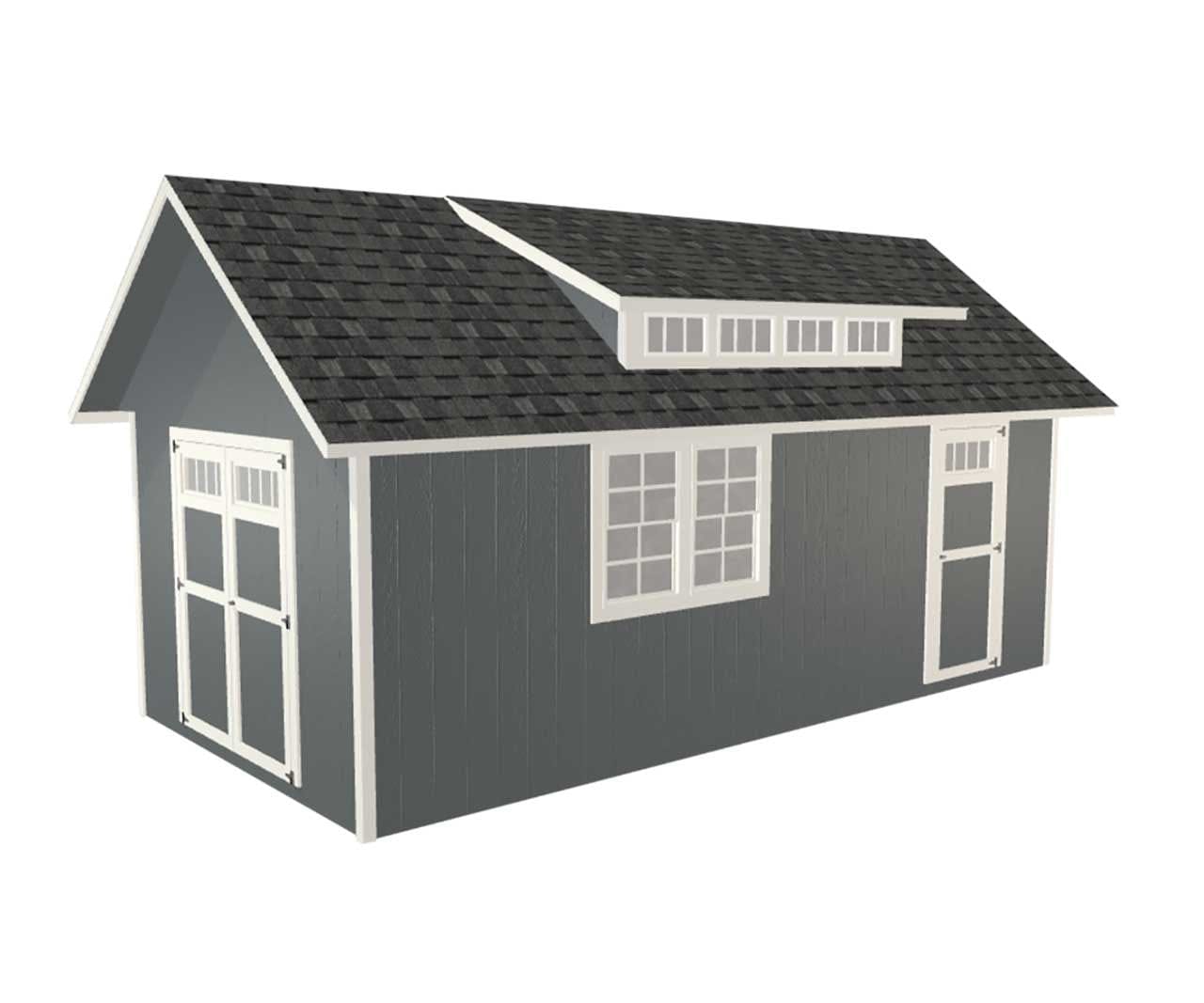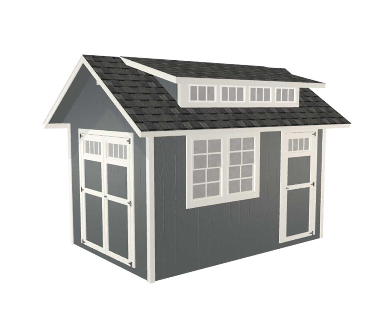It features a skylight window (or transom dormer) that provides lots of natural light. There are several options to choose from if you would like to add a cupola, shutters, flower boxes under the windows, a floor kit, a loft and ramp for the double doors. You can move the position of the doors and windows to where you need them. Also, its sleek look will make it a standout addition to your property.