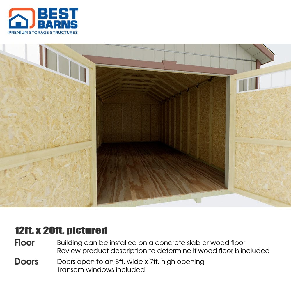 Upgrade your Best Barns Tailored Titan Garage Kit with the FortressFloor, a commercial-grade wood flooring system designed to enhance both durability and appearance. This optional floor kit provides a solid, level foundation while raising your building off the ground to protect against moisture and rot. Engineered for heavy-duty use, the kit includes 4x4 pressure-treated runners, 2x4 treated floor joists spaced 16" on center, 3/4" thick 4x8 plywood sheets, and all necessary hardware. Built with premium treated lumber, the FortressFloor is made to withstand demanding loads and harsh climates. Please note that materials are not pre-cut - simple straight cuts are required during assembly. The floor kit ships separately from your building and is delivered by a local lumber dealer, who will contact you to arrange a delivery time. Someone must be present to receive and sign for the delivery. This flooring upgrade is a smart, long-lasting investment in the stability and function of your new structure.