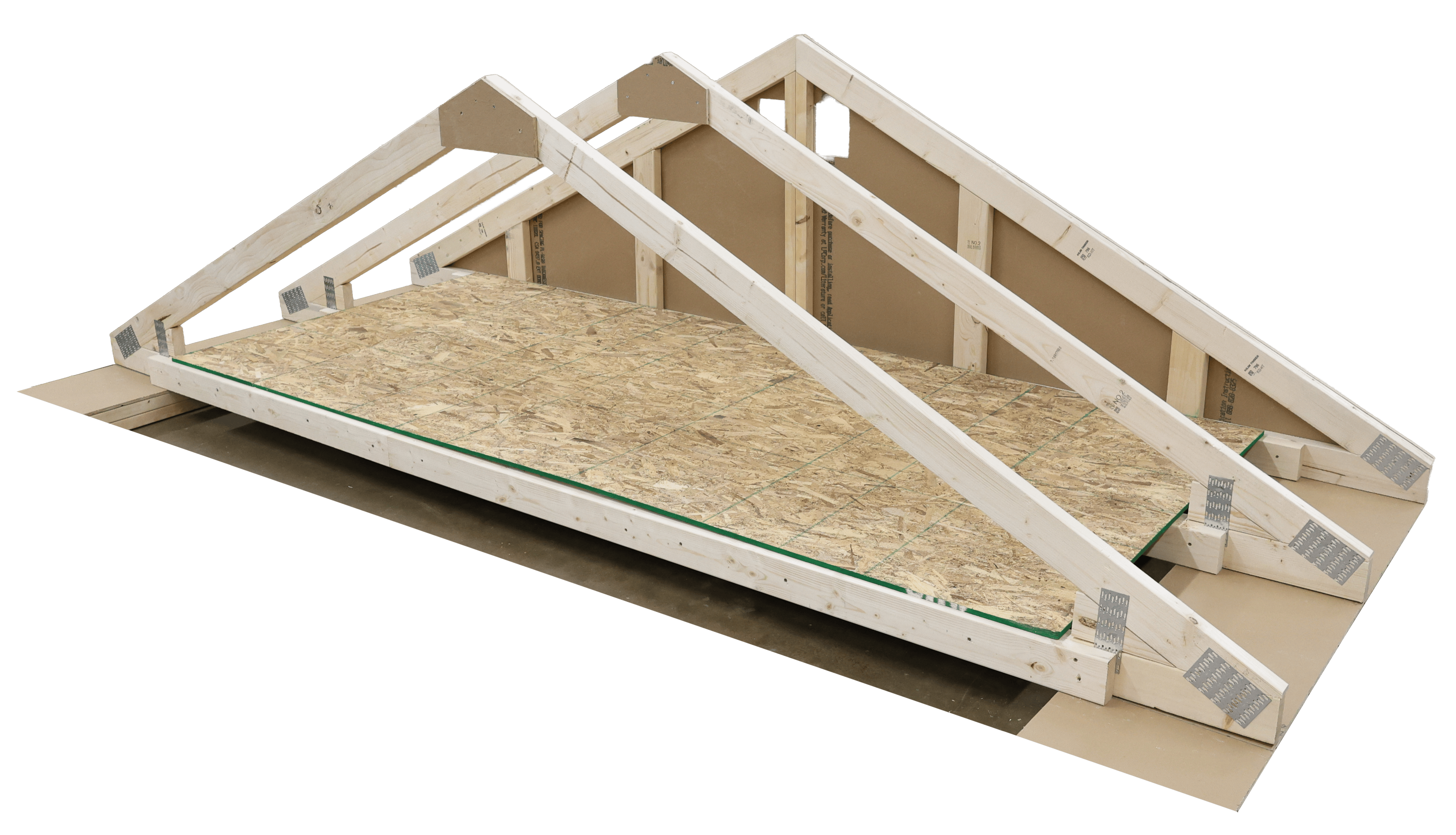 4' panelized wall sections with horizontal nailers for stronger, straighter walls.